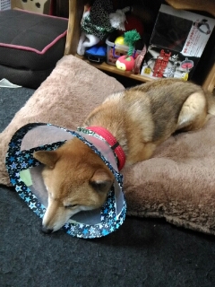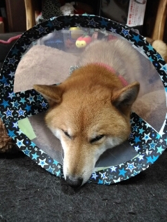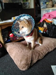 抜糸まではエリザベスカラー装着はしかたないですね。でも小さくしてもらえてよかったです。