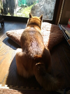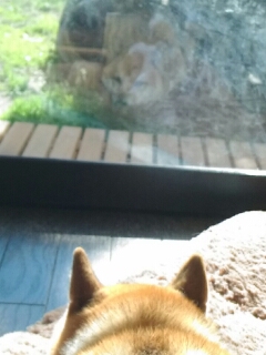 ガラスの中の柴犬さん