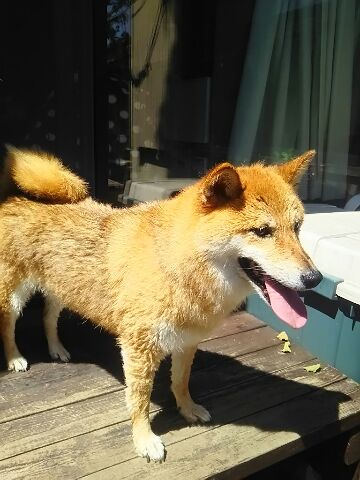 浴槽から出してもらって、プルプル中の柴犬さくら。