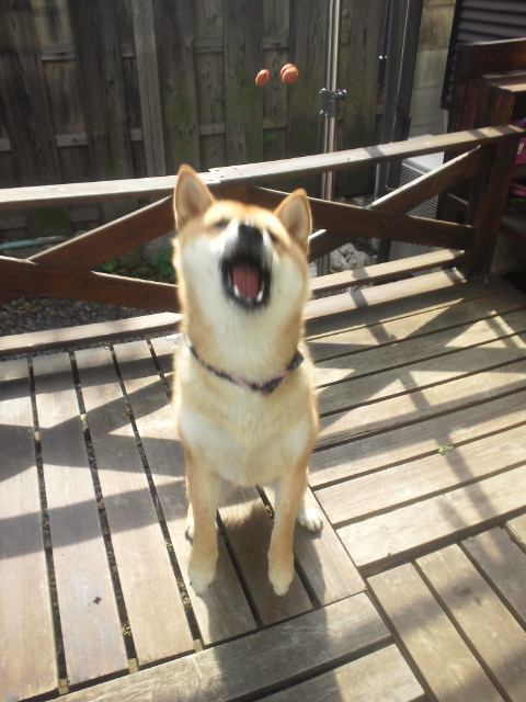 ボールやフリスビーは、空中キャッチしない柴犬さくらですが…