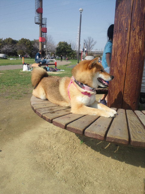 ドッグランでお疲れ様の柴犬さくら。