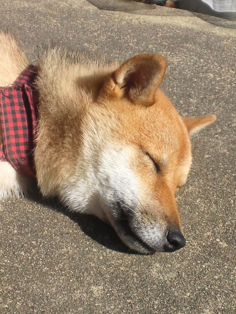 この季節、すぐに眠気に襲われる柴犬さくらに
