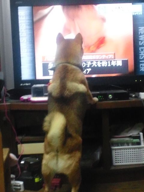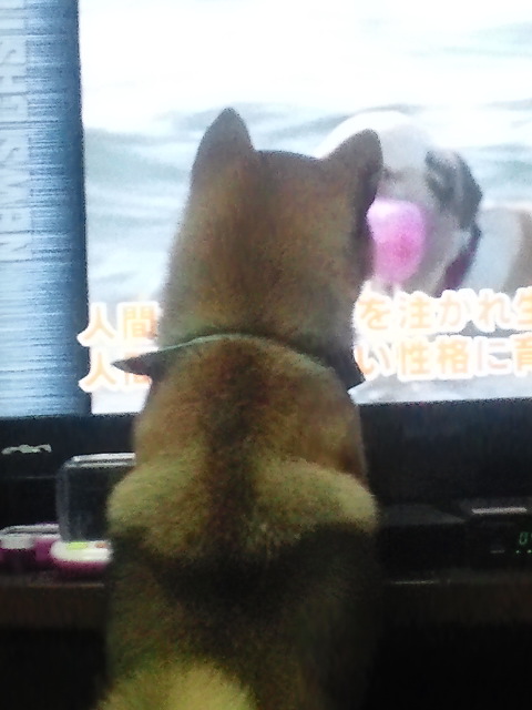 テレビに向かって、ガウガウやってた柴犬さくら。