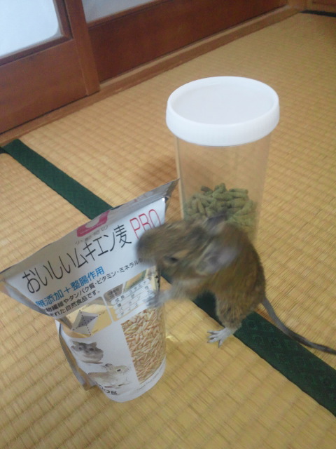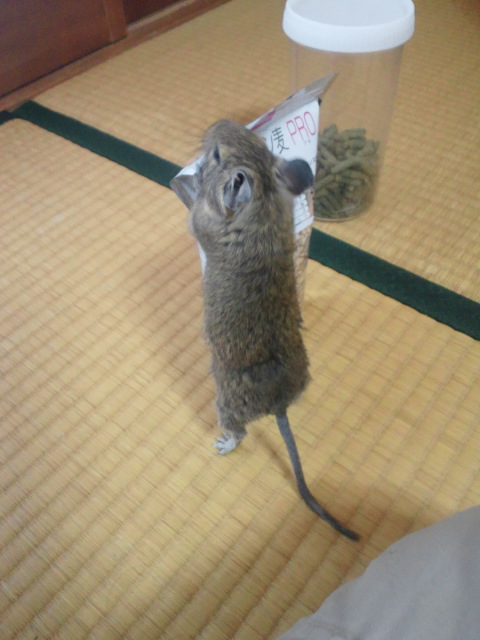 で、袋を破ろうとするデグーもみじf^_^;
