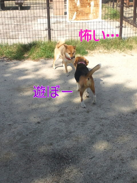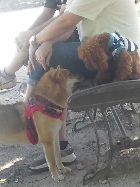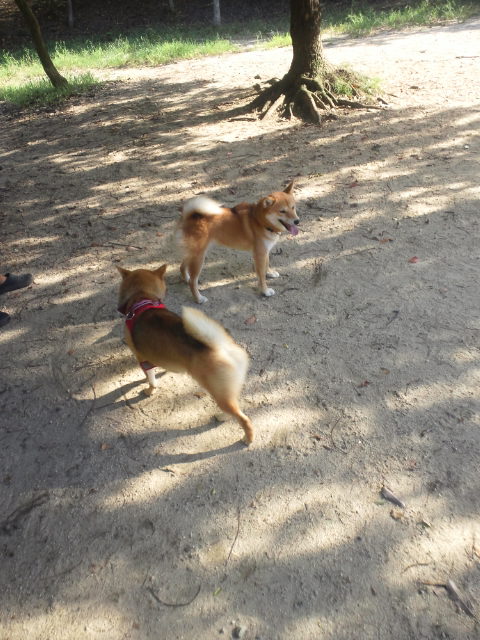 豆柴さくらちゃんとは、微妙な柴距離を保ってグルグルしてました。