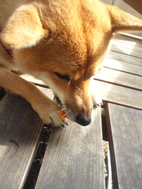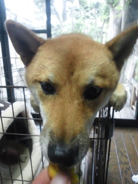 さくらは、食べたいけどなかなかもらえずガウガウ言ってました。