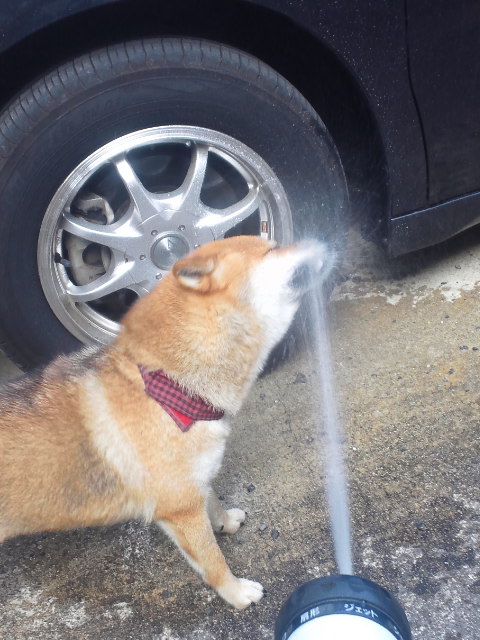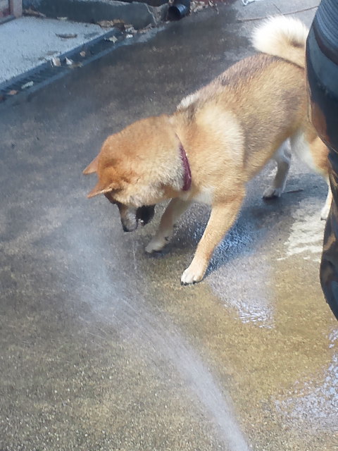 ワンコのホース遊び、水嫌いとの関係がとっても謎です(笑)