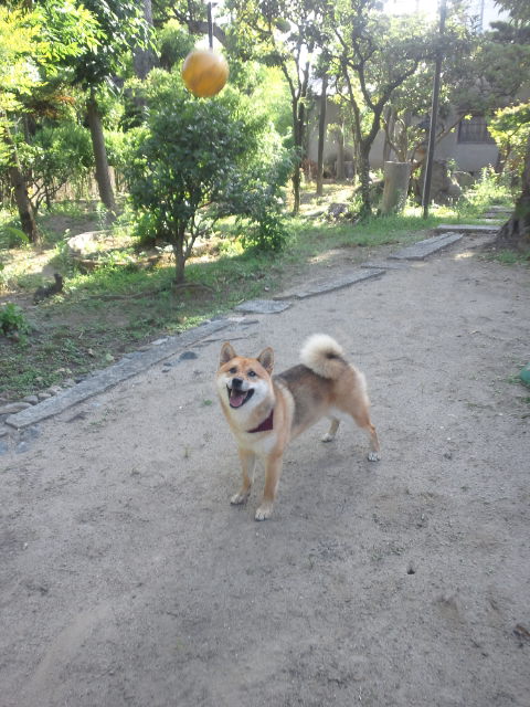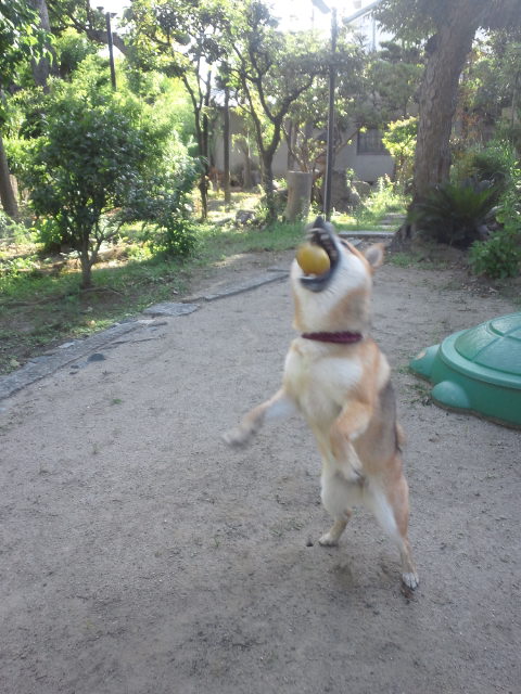 空飛ぶ物でも、ハンティング訓練する柴犬さくら
