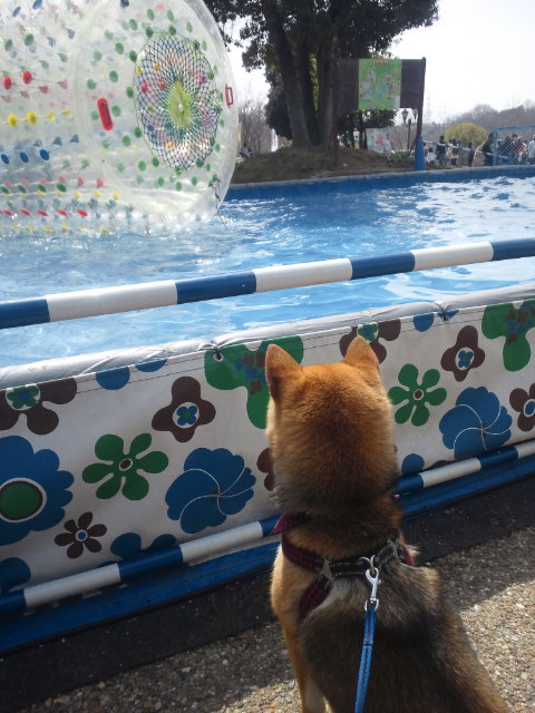 自転車やゴーカートの所は、ワンコ禁止だからしょうがないんですよ。
