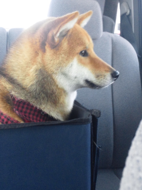 車の中から、ワクワクして、ずっと外を見ていた柴犬さくら。