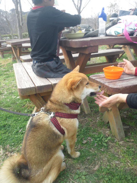 食べたいけれど、食べれない葛藤していた柴犬さくら。