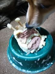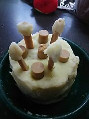 缶詰めのお肉に、マッシュポテトを塗った物。