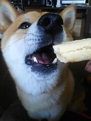さくらちゃん、パンが大好きって表情に出ていますね。幸せそうな顔をしています。