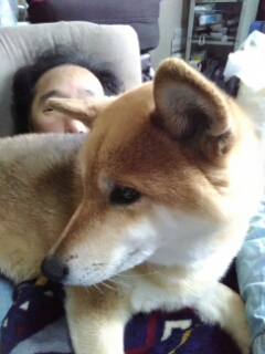 恐いものが有ると、パパの上に避難するのは、何時もの事ですが…