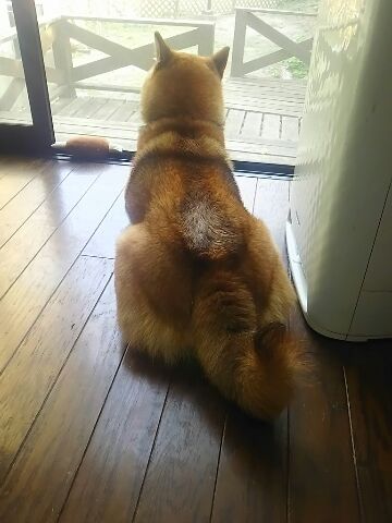 柴犬さくらが、寝そべっているのは何処でしょう?