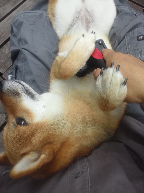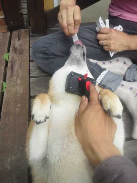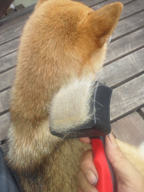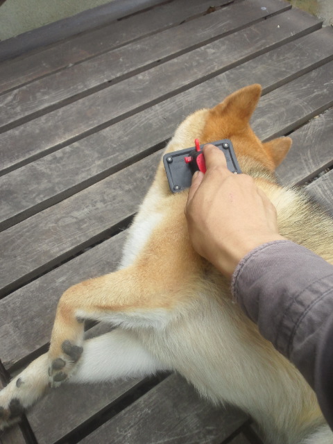 最近、ブラッシングをあまり嫌がらない柴犬さくら。