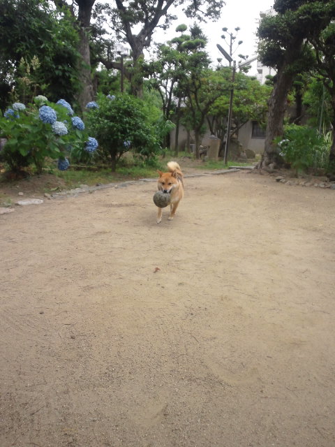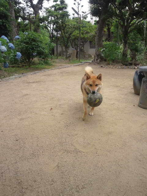 なぜか、小さいボールよりも、デカいボールが好きな柴犬さくら。