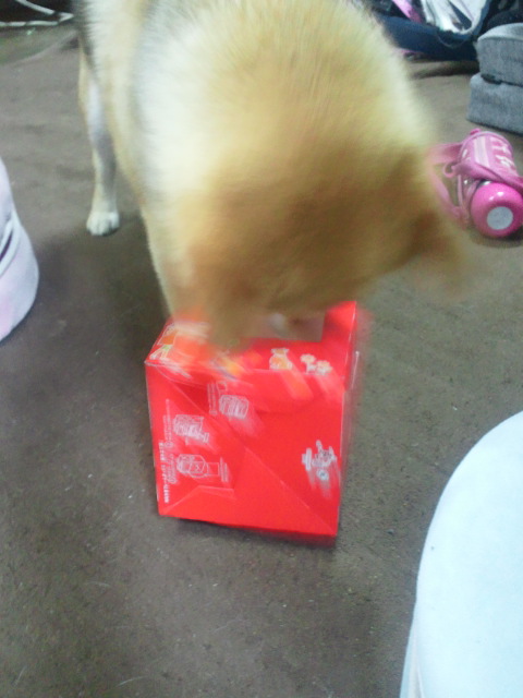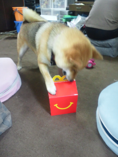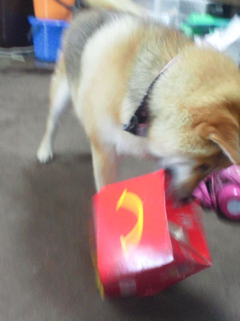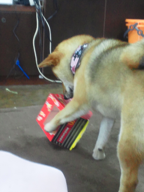 マクドナルドの箱はさくらちゃんにとって魅力的なおもちゃだったんですね。やっぱり匂いかな?