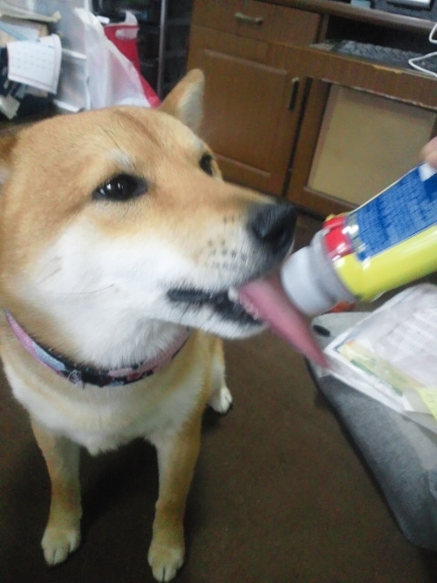 ボトルの先がボール状でクルクルって、子供の頃にそんな感じのノリを持っていたような気がします。犬のおやつやおもちゃって、本当に種類がたくさんになりましたね。