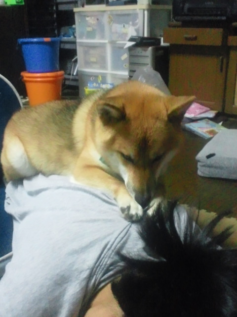 温熱マッサージ中の柴犬さくら。