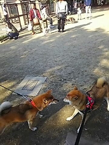 ドッグランでさくらちゃんに挨拶している子、みんな柴ちゃんですね。