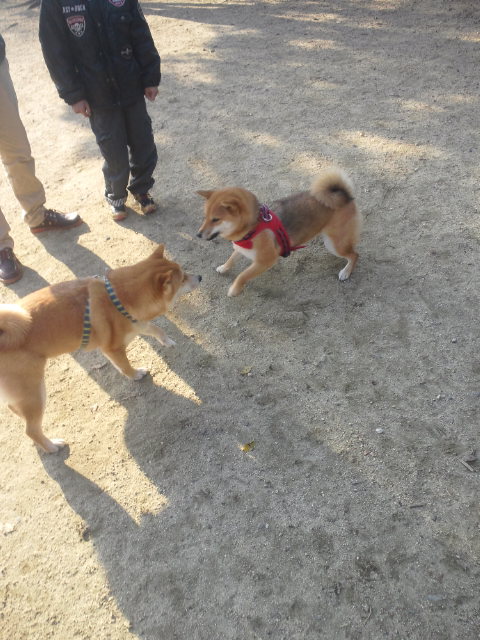 あんまりガツガツ来る子じゃ無かったので、柴犬さくらもビビりながら接近!