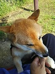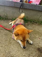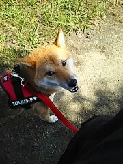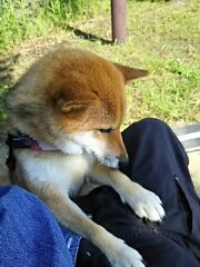 と浮かない顔の柴犬さくら