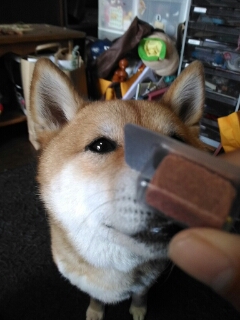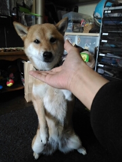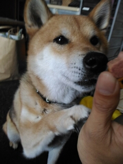 一緒に食べてみたいんだワンの柴犬さくらに、