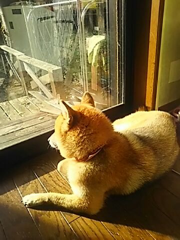 そんな晩秋、窓際で日向ぼっこしている柴犬さくら。