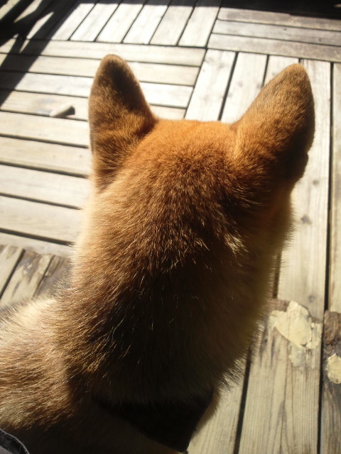 光輝く柴犬さんの後頭部