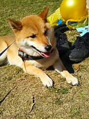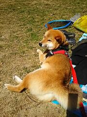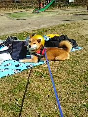 お弁当が終わって散歩もしてくつろぎタイムの柴犬さくら