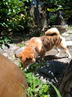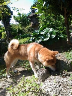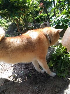庭の真ん中で、大騒ぎしていた柴犬さくら。