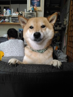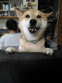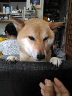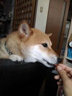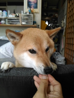 お昼ご飯の後、いつもの様に、オヤツおねだりの柴犬さくら。