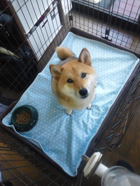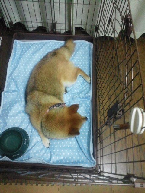 柴犬さくらのケージも、夏仕様に模様替え。
