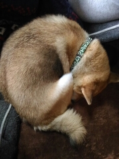 丸まって寝るのは王道なんだワンの柴犬さくらに、