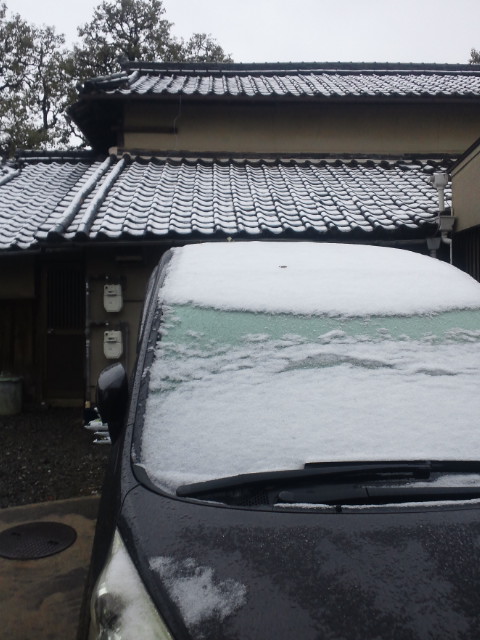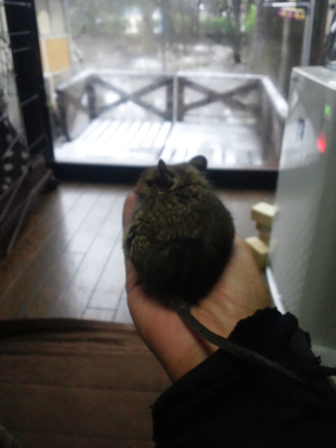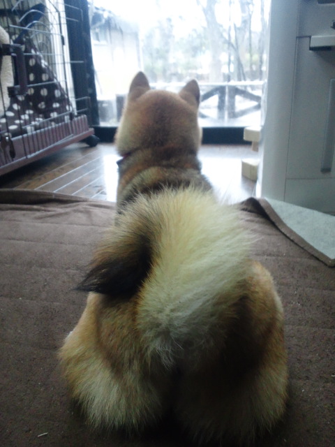 手の中でぬくぬくしながら、雪を見てました(笑)