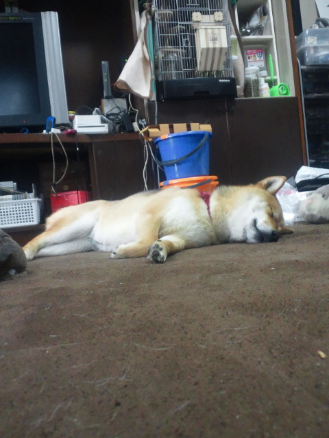 気を抜いて、リビングでノビノビと寝ている柴犬さくら。