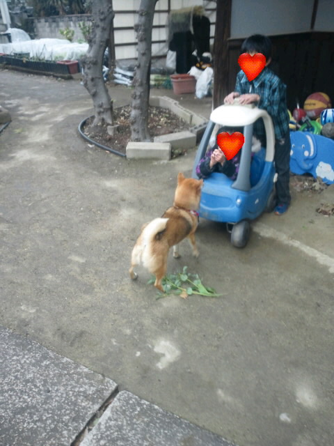 って事で、年賀状ネタの撮影会に集合した子ども達と柴犬さくら。