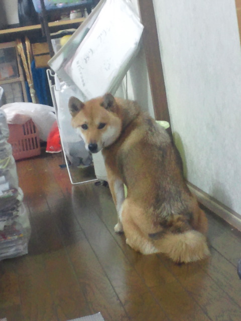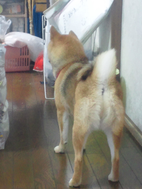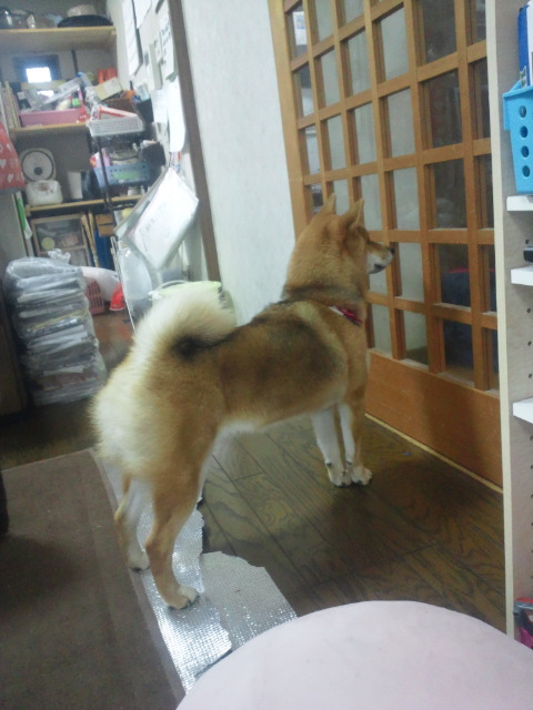 柴犬さくらは、俊敏に反応して、入り口をガン見(笑)