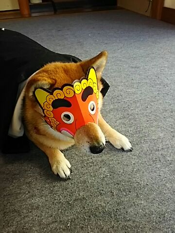 恵方巻き姿がよく似合うさくらちゃんにも驚きましたが、ぴったりの鬼の面を被せられても動じないのはすごいと思いました