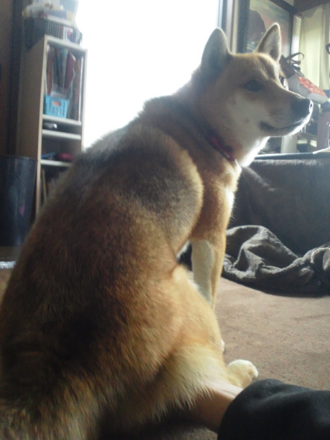 対抗意識を出したのか、柴犬さくらも手乗りして来ました(笑)
