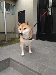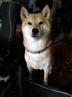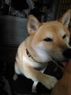 夕飯野菜の収穫で、待たされてた柴犬さくら。