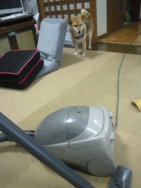はるは、掃除機にずっとついてきて戦っています。攻撃型なようです。
