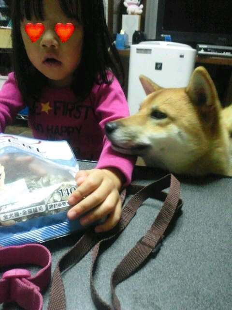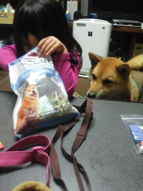 さくらちゃんになるべく大きいにぼしをあげようと真剣に選ぶ娘ちゃんがかわいいです。