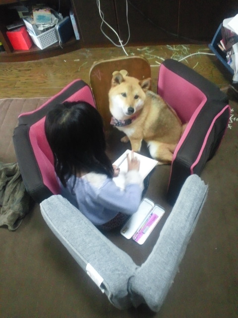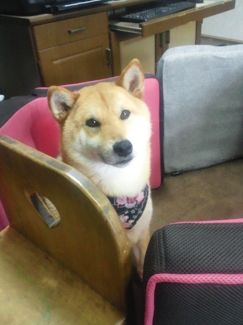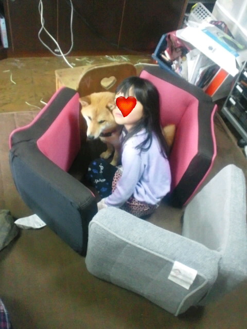 娘ちゃん、自分のスペースに大好きなものを持ち込んで楽しそうです。
