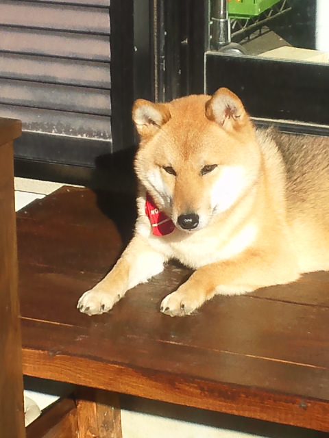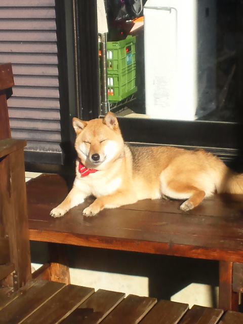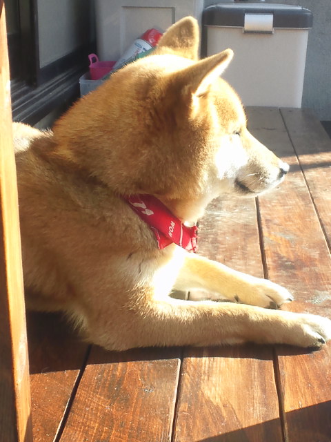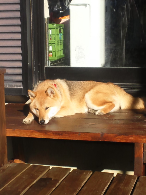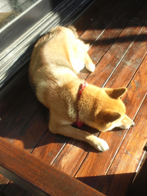 濡れ縁、広くなって寝やすくなったワンな柴犬さくらに