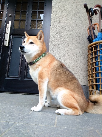 先に玄関に戻って、遅いんだワンな顏してました。