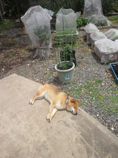 そんな中、柴犬さくらは懲りずに陽向でゴロゴロ