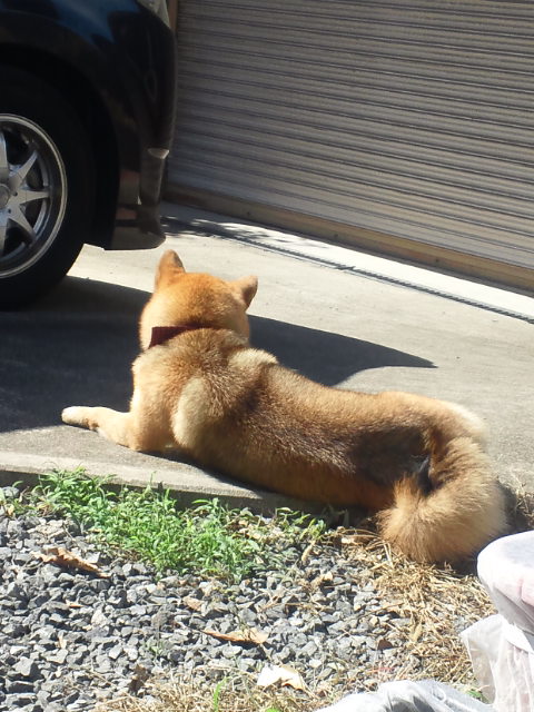 日なたぼっこ、気持ち良さと暑さの戦いみたいです(笑)