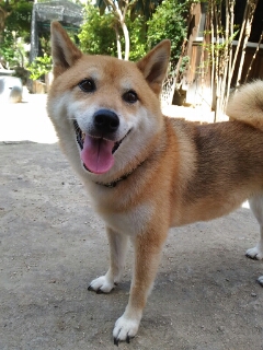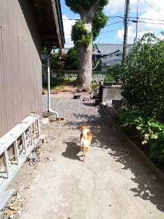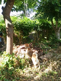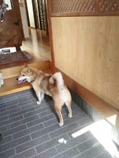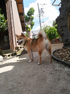 外に出た柴犬さくら、ぐるっと庭をチェック。